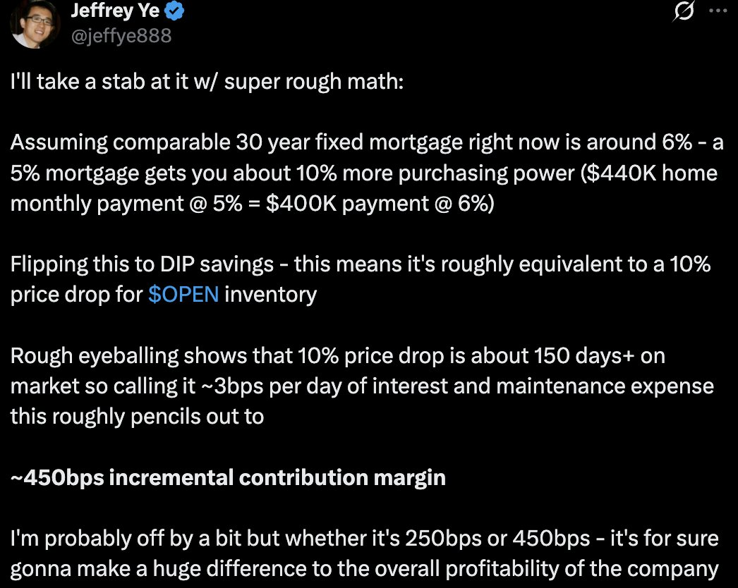 Because buyer purchasing power is so sensitive to rates and because Opendoor's holding costs are so high - they've actually just discovered a huge source of "alpha" for the business.
