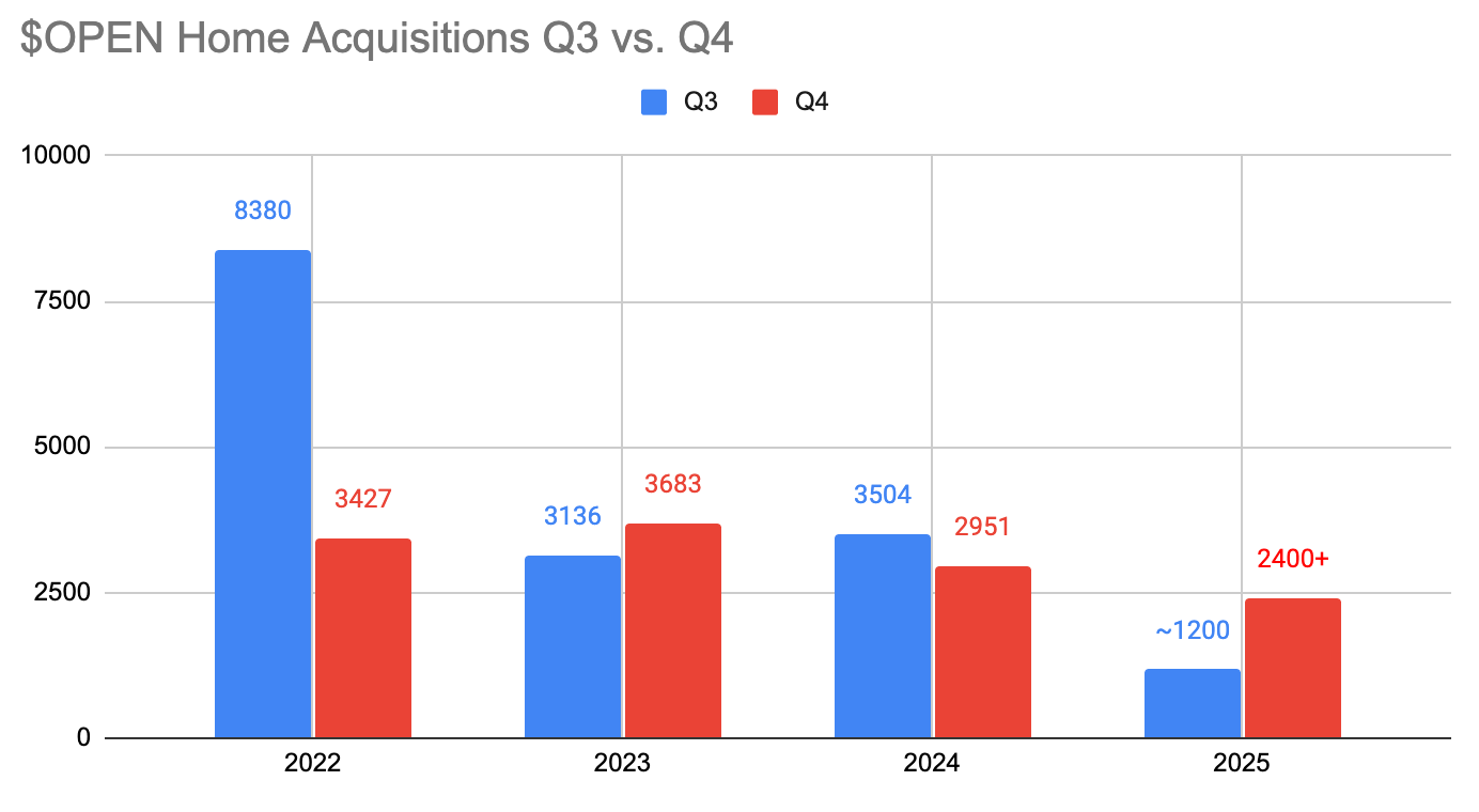 To give you a sense of the historical range - 2024 Q4 vs. Q3 acquisitions were down 16% as Carrie and the team hunkered down to save cash (and had gotten burned in scaling the previous year). On the other hand, in 2023 Q4 vs. Q3 - the team actually purchased 17% more homes as they expected the housing market to rebound.